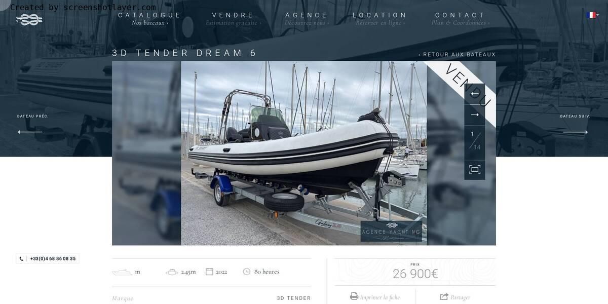 Le 3D Tender Dream 6 est un semi-rigide de 6 mètres alliant confort, performance et sécurité. Facile à manœuvrer et idéal pour des sorties en famille ou entre amis, il offre un large espace de circulation à bord et une grande polyvalence pour les activités nautiques. Sa carène robuste et son agencement ergonomique garantissent une navigation agréable aussi bien en balade côtière qu’en croisière à la journée.