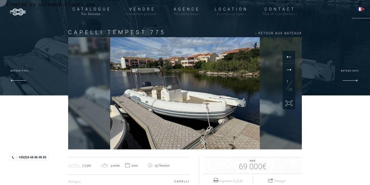 À saisir : CAPELLI Tempest 775 OPEN de 2021, dans un état irréprochable. Motorisé en 250 CV Yamaha avec seulement 97 heures, il offre de superbes performances en mer. Ce semi-rigide est très équipé, prêt à naviguer : électronique, bain de soleil, taud, douchette, table, sellerie premium… Entretien suivi avec rigueur, hivernage annuel hors de l’eau. Son financement en LOA est en cours et peut être repris avantageusement, idéal pour optimiser votre budget. Un bateau alliant sportivité, confort et fiabilité, parfait pour vos escapades estivales. Opportunité rare sur ce segment, à visiter rapidement.